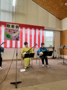 敬老会では、ボランティアの【天翔会】の皆さんが楽器や歌、踊りを披露してくださいました。